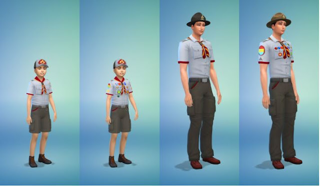 Click vào Scouting Board và chọn Change to Scouting Uniform hoặc vào Create A Sim và thay đổi diện mạo của họ. Bạn sẽ nhận được một bộ đồng phục mới khi Sim của bạn tham gia Hướng đạo và khi bạn đạt đến mức tối đa trong nghề hướng đạo. Trẻ em và thiếu niên có trang phục khác nhau.